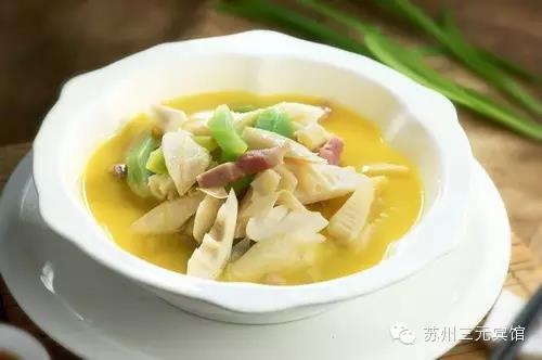 腌笃鲜最讲究一个“鲜”字,而春天冒出来的春笋就是最鲜的食物之一,会吃的苏州人当然不会错过这道美味。咸肉、排骨加新鲜竹笋细火慢炖,熬出的汤浓白厚醇,是春天苏州人餐桌上必不可少的一道美味,而且只要原料齐全,自己做也很容易。怎么样,看完这些美食肚子有没有抗议啊,快来苏州三元宾馆品尝吧。