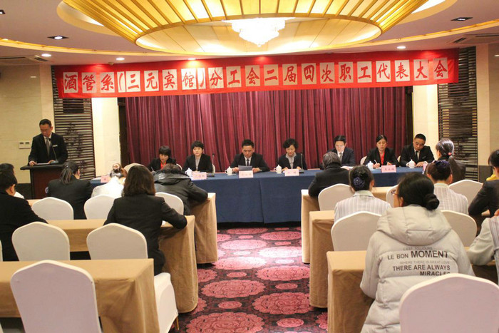 三元宾馆分工会二届四次职工代表大会于1月31日下午在宾馆四楼多功能厅隆重举行。