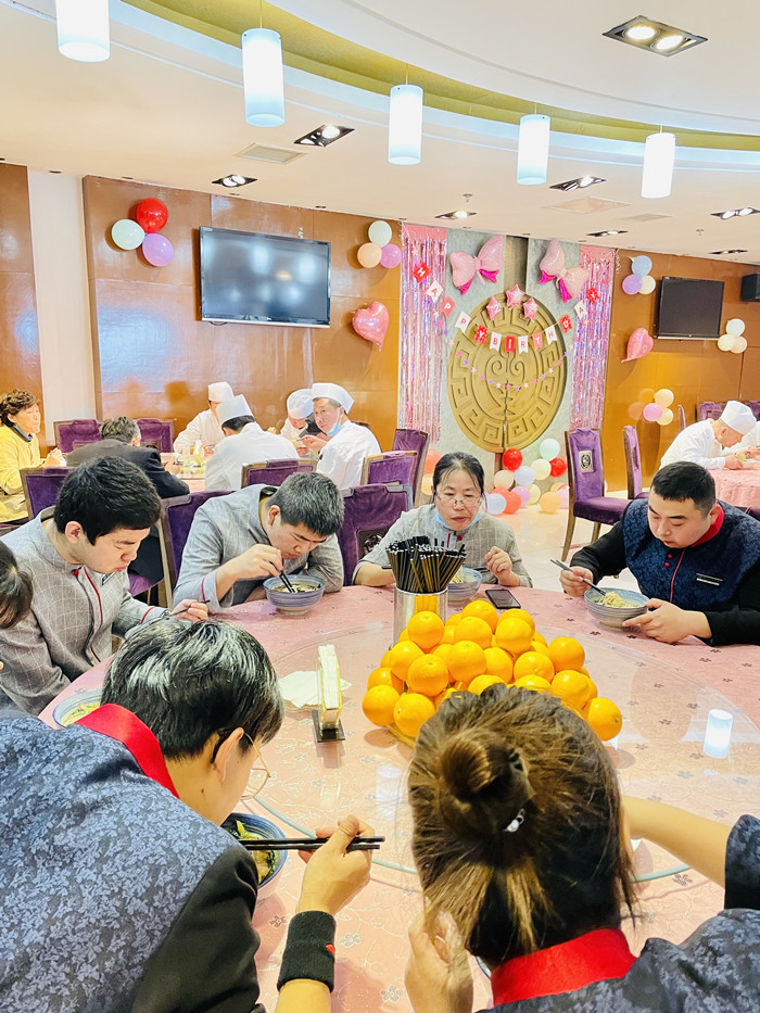 光阴荏苒,岁月如梭,伴随着冬阳艳阳,11月18日三元宾馆23岁啦! 二十多年来宾馆始终坚持宾客至上的服务宗旨和以人为本的经营理念,不断深化改革,拓展市场,锐意进取,勇闯难关,三元人兢兢业业努力工作。今年因新冠疫情影响,宾馆的经营受到严峻考验,面对困难三元人团结凝聚,齐心协力,共克时艰。为提高宾馆凝聚力,增强员工归属感,进一步推动宾馆企业文化建设,形成良好的向心力和凝聚力,让每位员工切实感受到宾馆这个大家庭的温暖。11月18日,宾馆餐饮部精心为每位员工在餐厅准备了美味的生日面。员工们围坐在一起,大家谈笑风生开心的回忆着宾馆的历历往事,以朴素简洁的形式共同庆贺宾馆开业23周年。