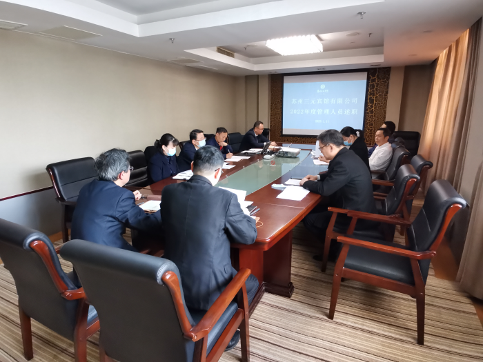 20231月11日上午,168官方开奖官网在线在三楼会议室召开2022年度管理人员述职会议,会议由资产经营公司总支副书记朱伟主持,宾馆相关管理人员参加。