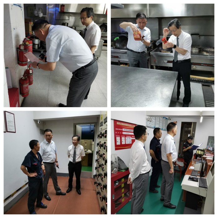俞险峰总经理在朱伟书记的陪同下,重点检查了厨房、泵房、消防监控室、客房等重点领域,对消防设施是否完好有效、安全出口是否畅通、灭火器配备是否到位、餐饮卫生、食品安全等情况进行了细致检查,对发现的问题要求宾馆立即纠正,对不能立即纠正的责令限期整改。